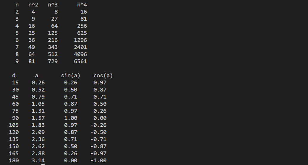 #print(title.format("n","n^2","n^3","n^4"))