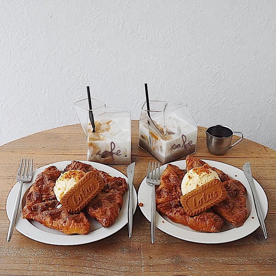 韓国で人気のスイーツクロッフル 見た目は普通のワッフルですが、実はクロワッサンの生地でできているためバターが香るサクサクふんわり触感が人気!