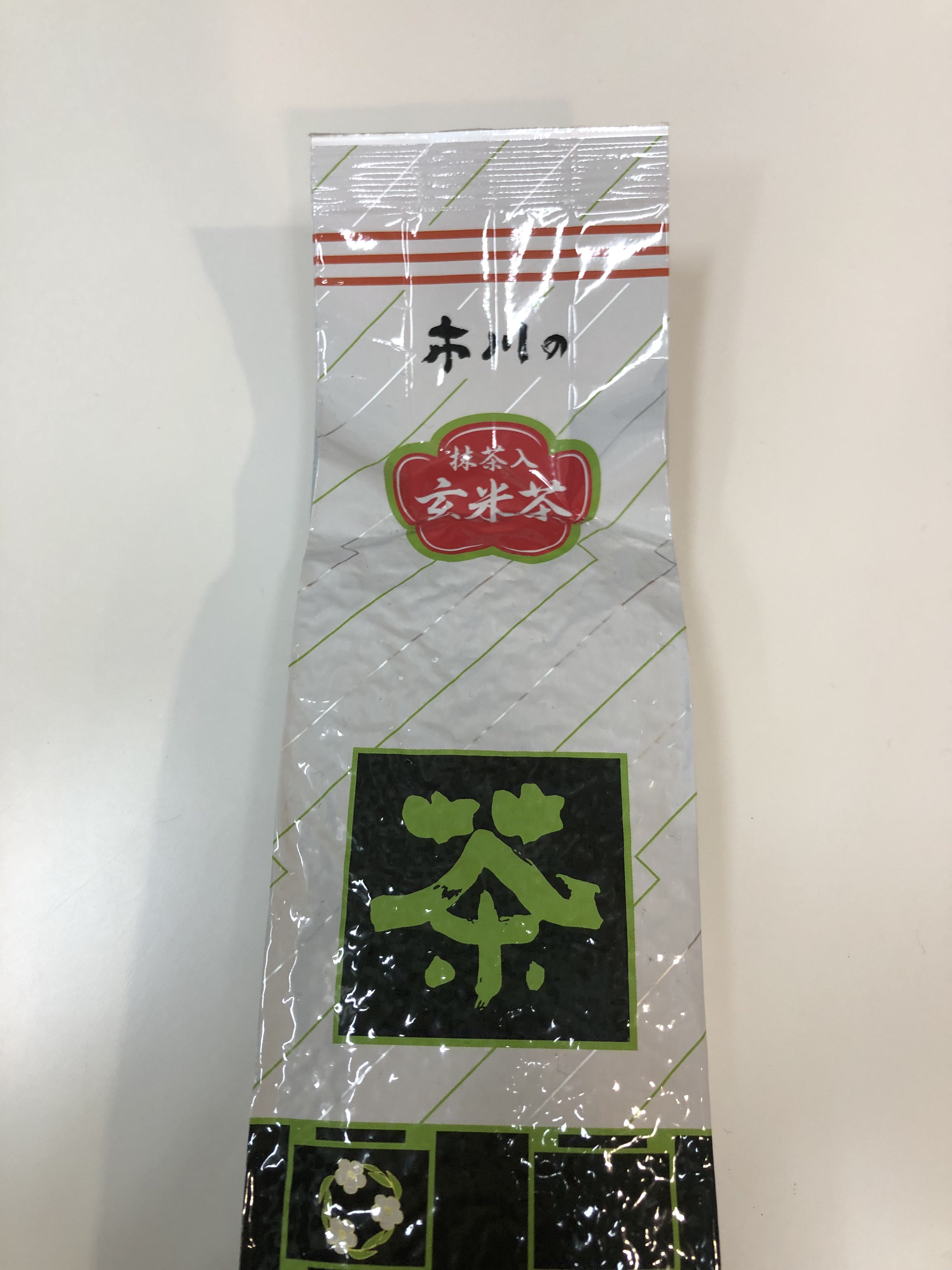 抹茶入り玄米茶は玄米を炒って狐色になったものと爆ぜてポップコーン状にしたものをぐり茶に混ぜ合わせ、