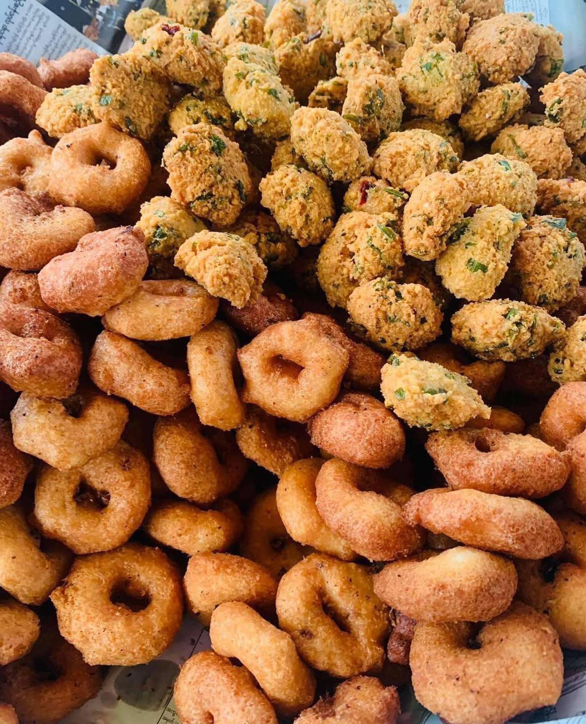 サヌンマギン-->小麦粉とバナナかジャガイモで作ったお菓子。甘い味。