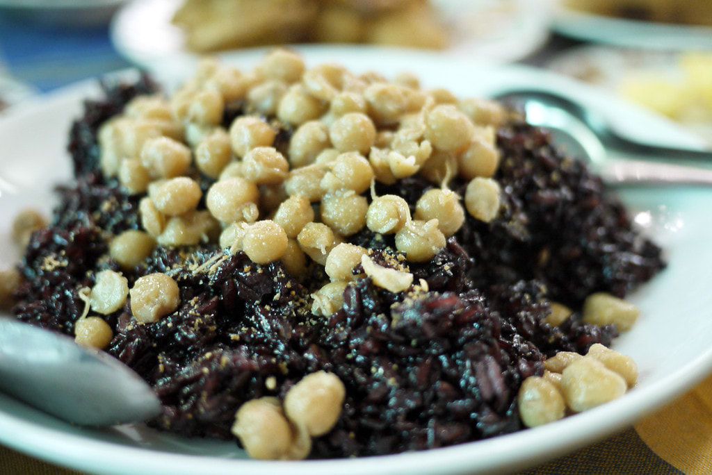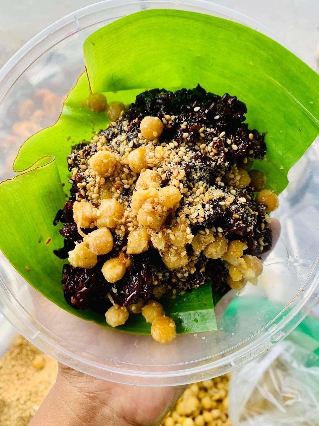 GawNyiBoung-->モチ米です。天ぷらあげと豆の上で塩を付けて食べる