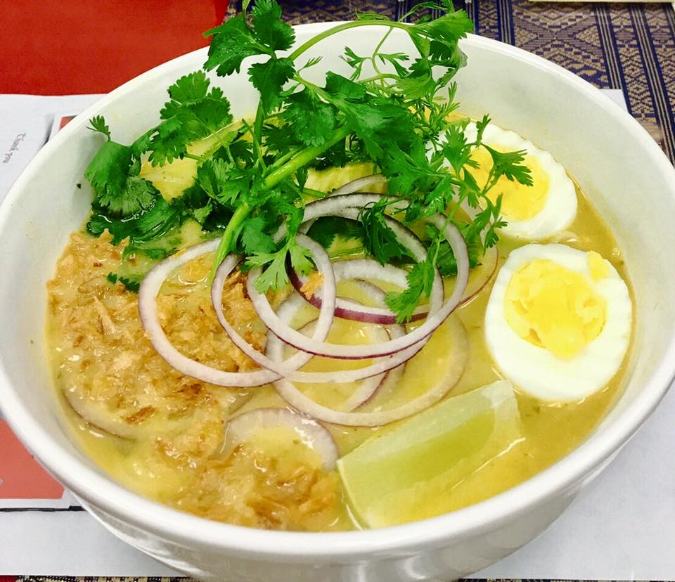 OwnNoKhawSwe-->ココナッツミルクのスープで細い面で食べる朝食